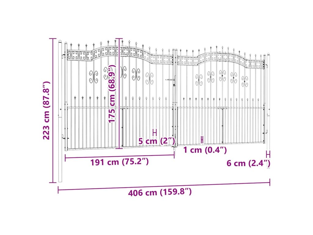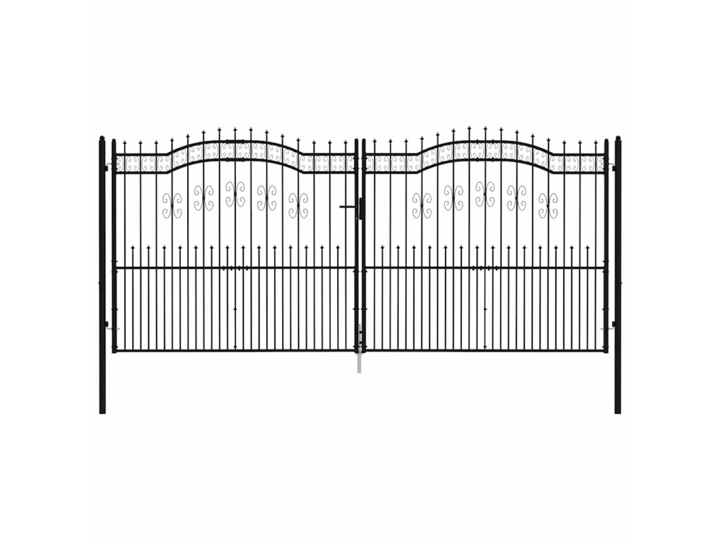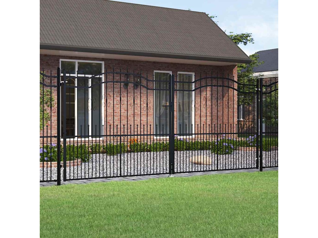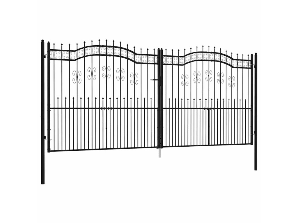Plotová branka s kopím nahoře černá 406 x 175 cm, práškově lakovaná ocel 151103