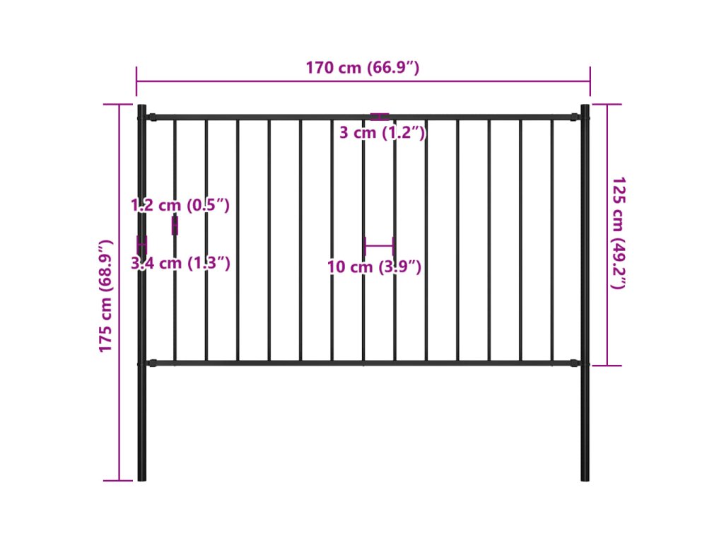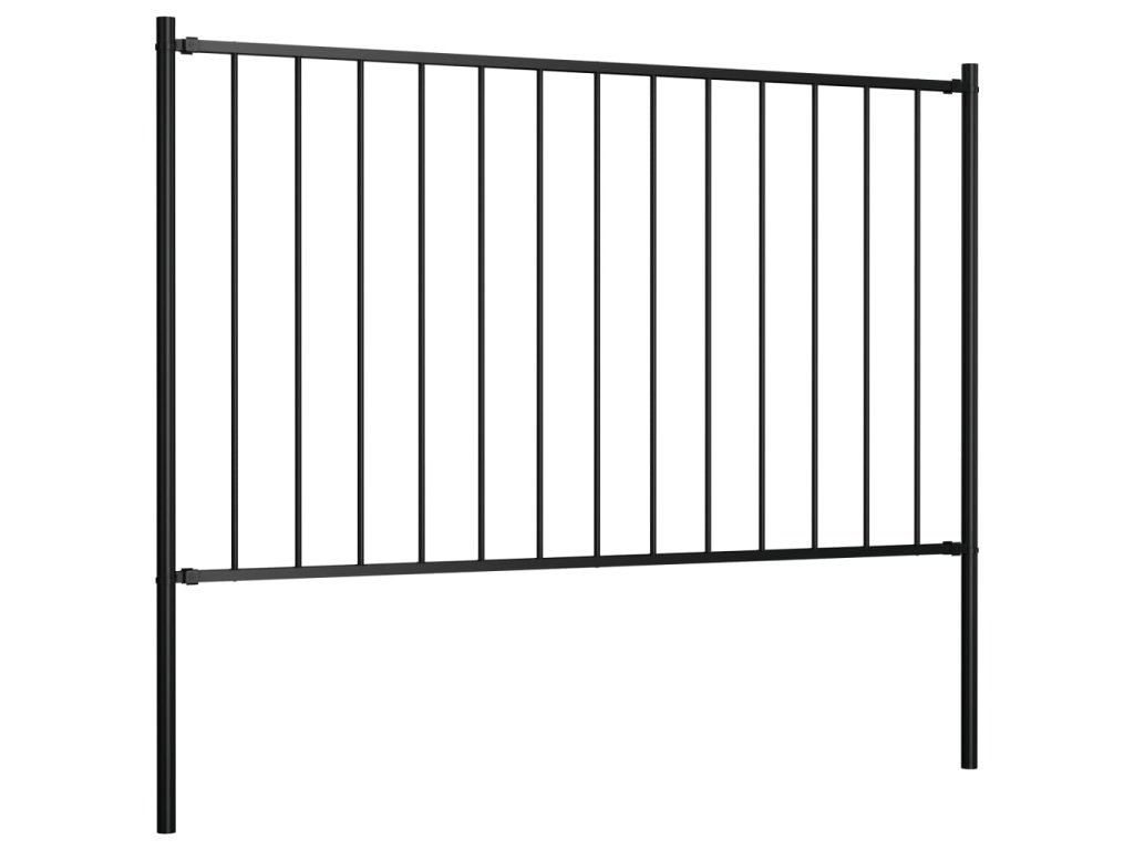 Plotový dílec se sloupky ocel práškový lak 1,7 x 1,25 m černý 145211