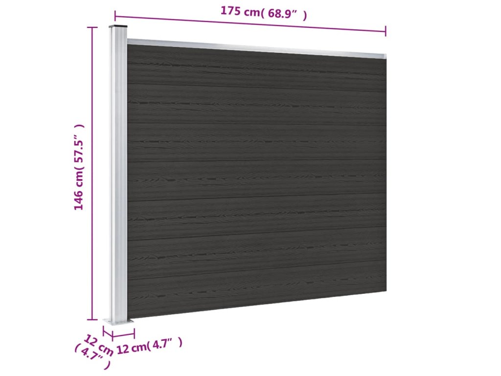 Plotový dílec WPC 175 x 146 cm černý 148985