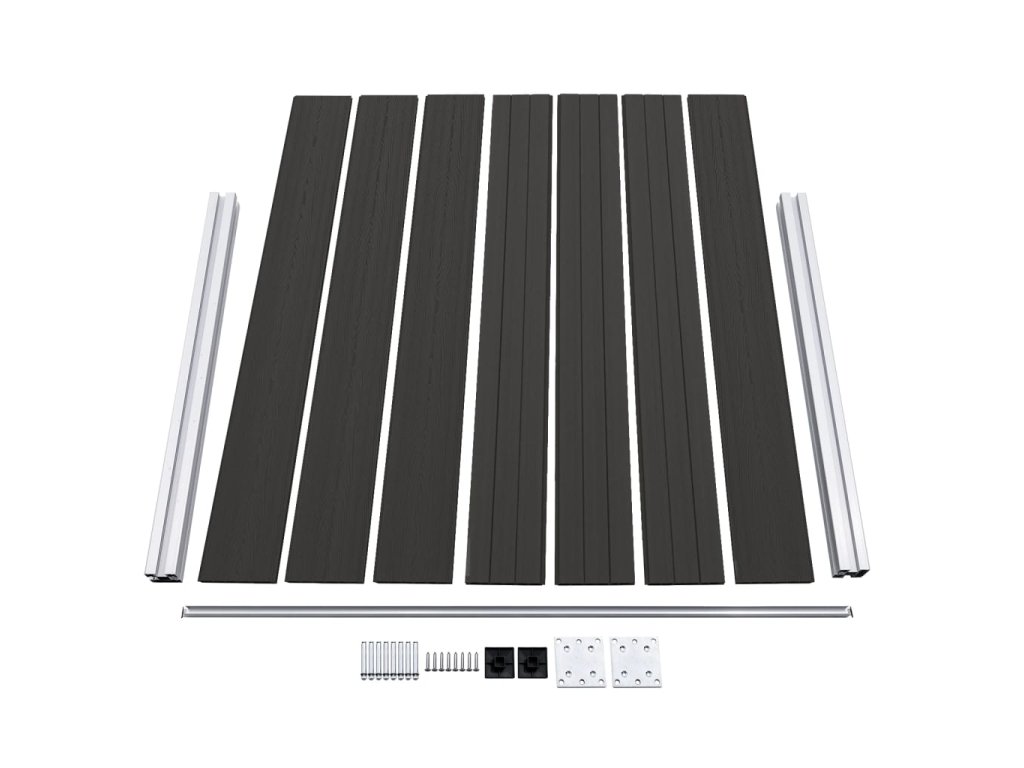 - Materiál: WPC (dřevoplast), hliník, ocel