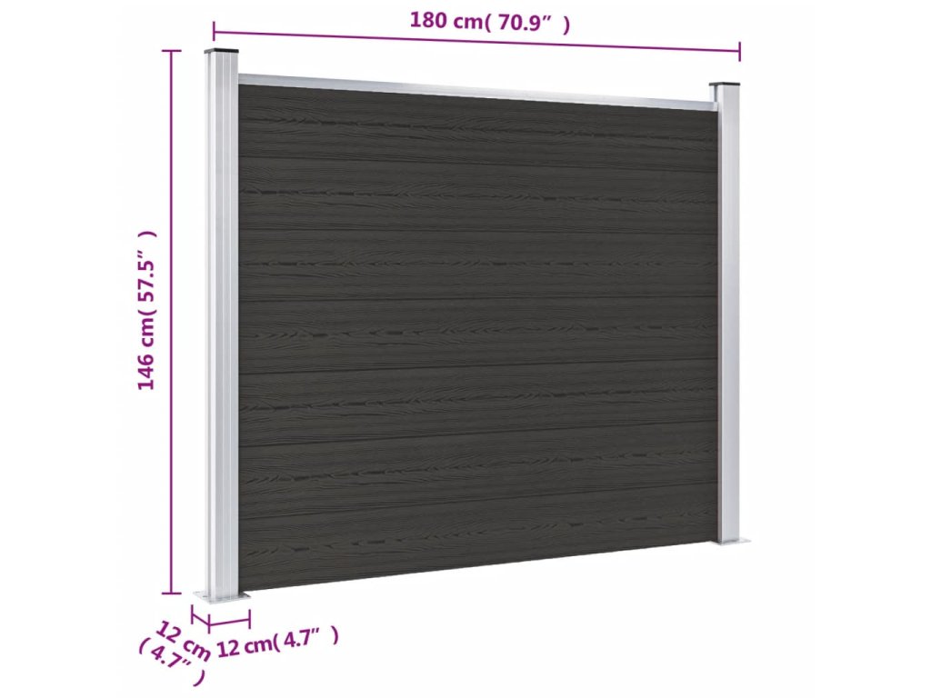Plotový dílec WPC 180 x 146 cm černý 148984