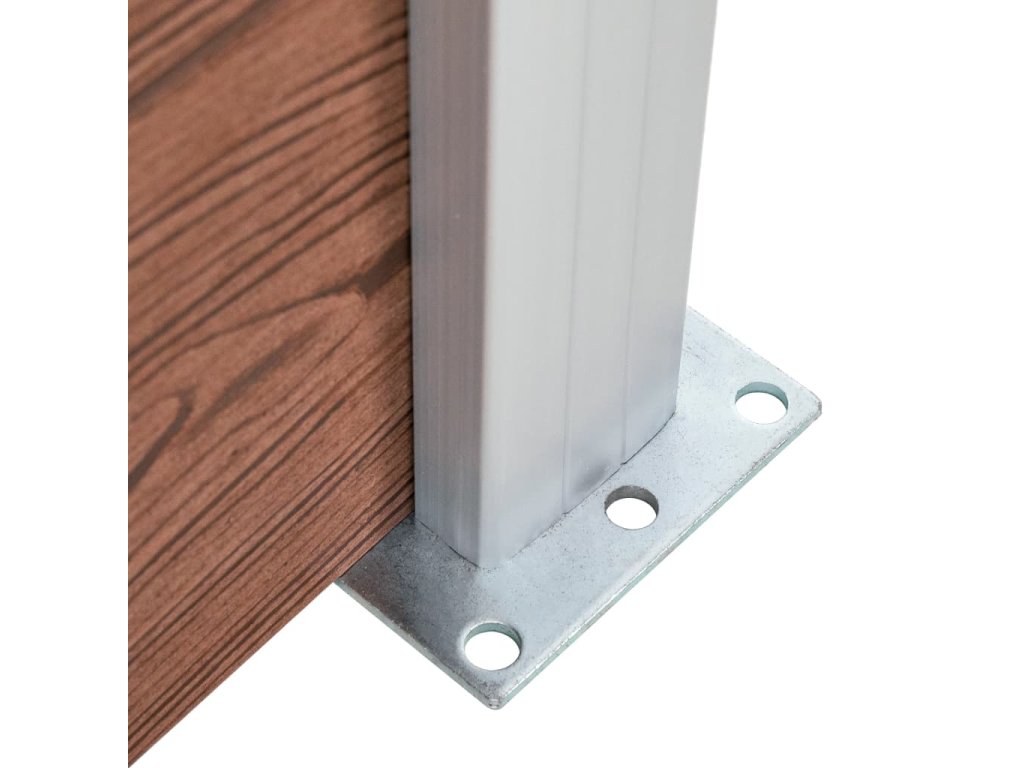 - Materiál: WPC (dřevoplast), hliník, ocel