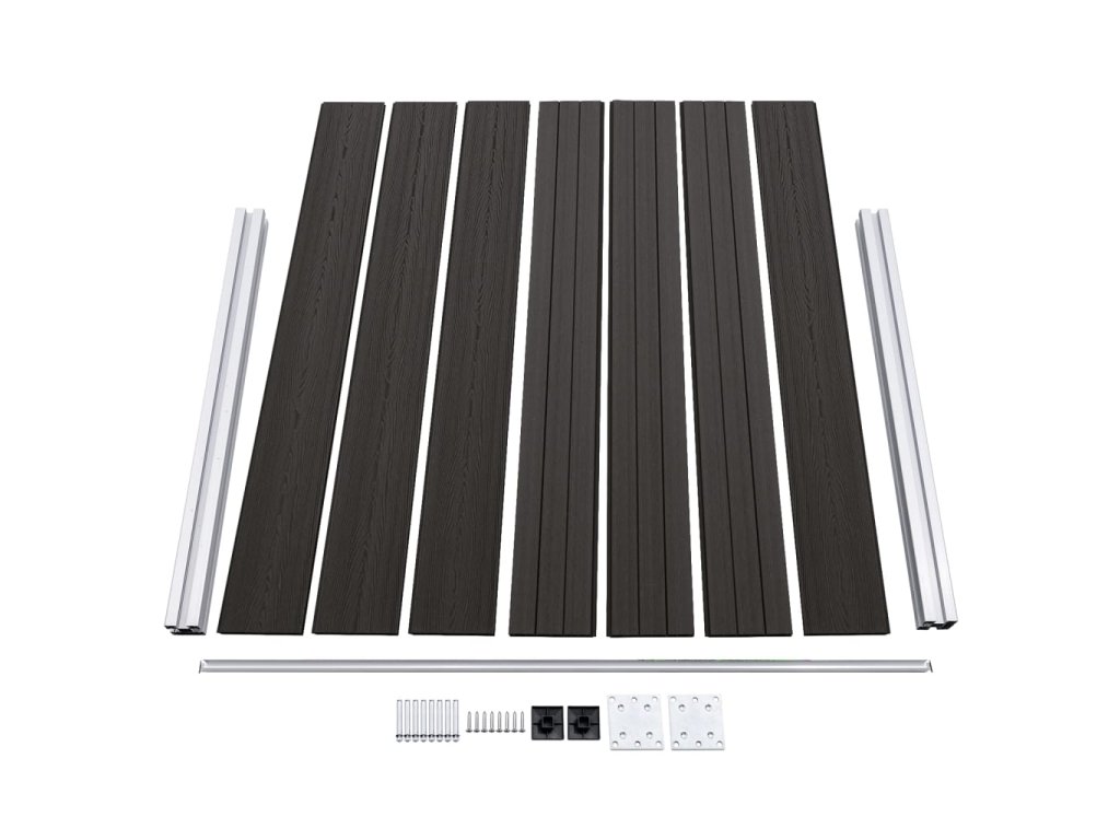 - Materiál: WPC (dřevoplast), hliník, ocel