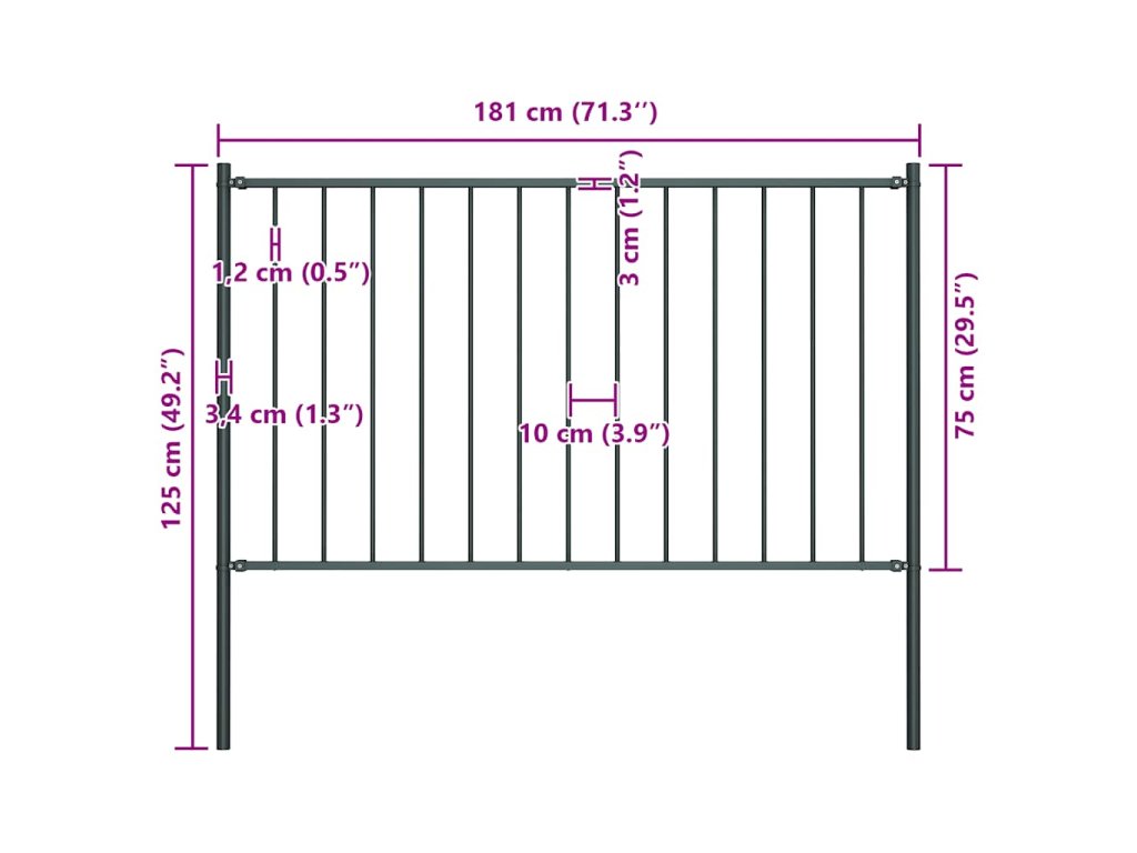 Plotový panel se sloupky, práškově lakovaná ocel 1,81 x 0,75 m, antracitový 145212