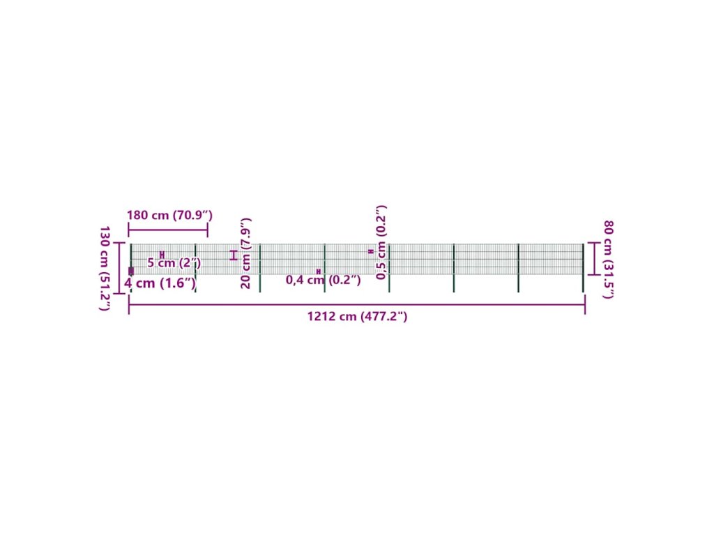 Plotový panel se sloupky železný 1212 x 80 cm zelený 278610