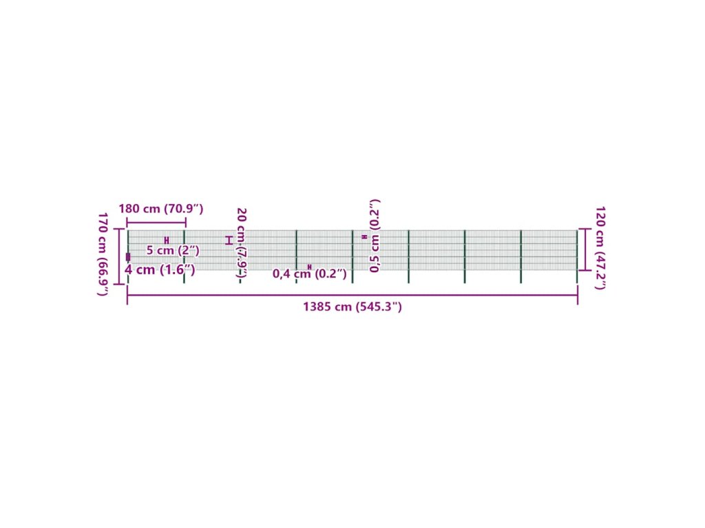 Plotový panel se sloupky železný 1385 x 120 cm zelený 278668