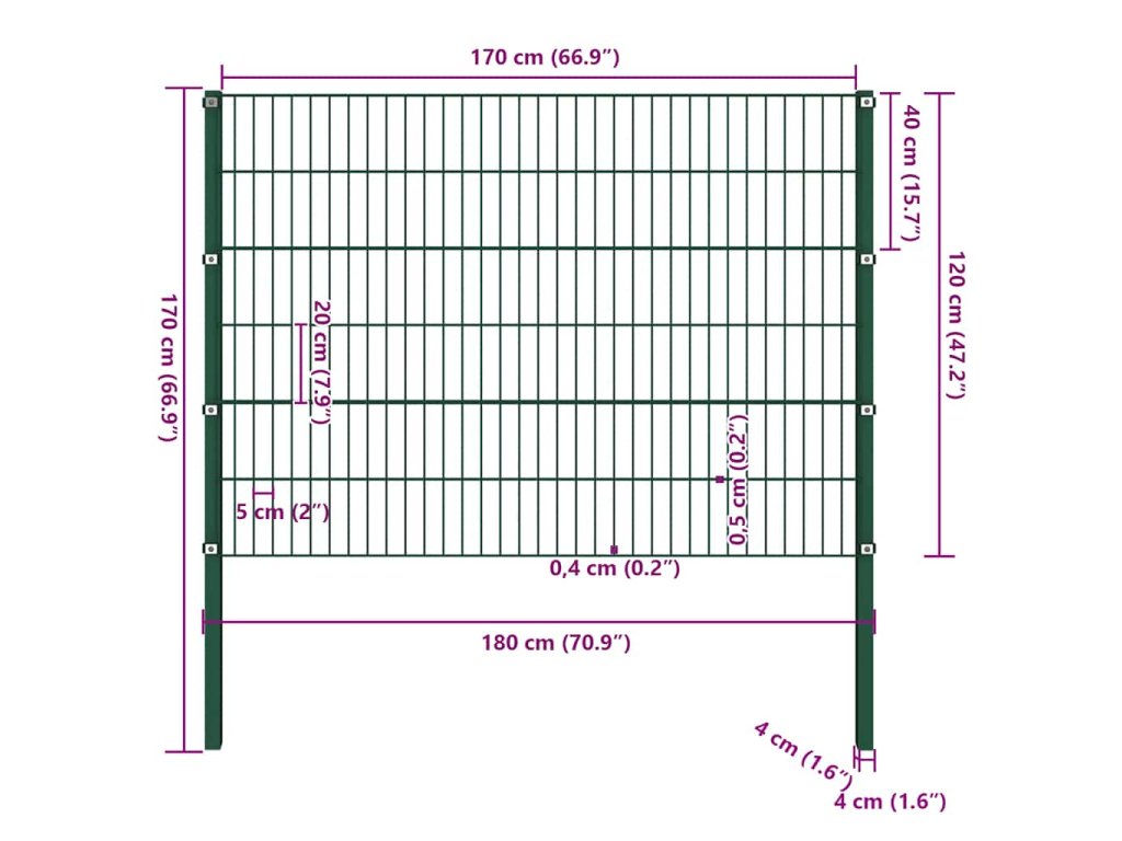 Plotový panel se sloupky železný 176,5 x 120 cm zelený 144934