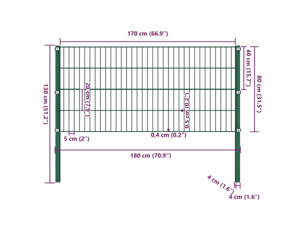 Plotový panel se sloupky železný 176,5 x 80 cm zelený 144933