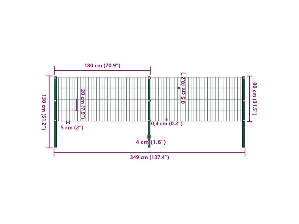 Plotový panel se sloupky železný 349 x 80 cm zelený 278605
