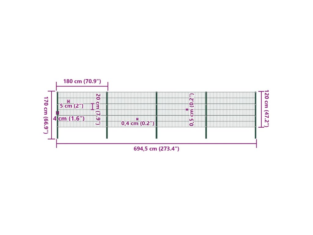 Plotový panel se sloupky železný 694,5 x 120 cm zelený 278664