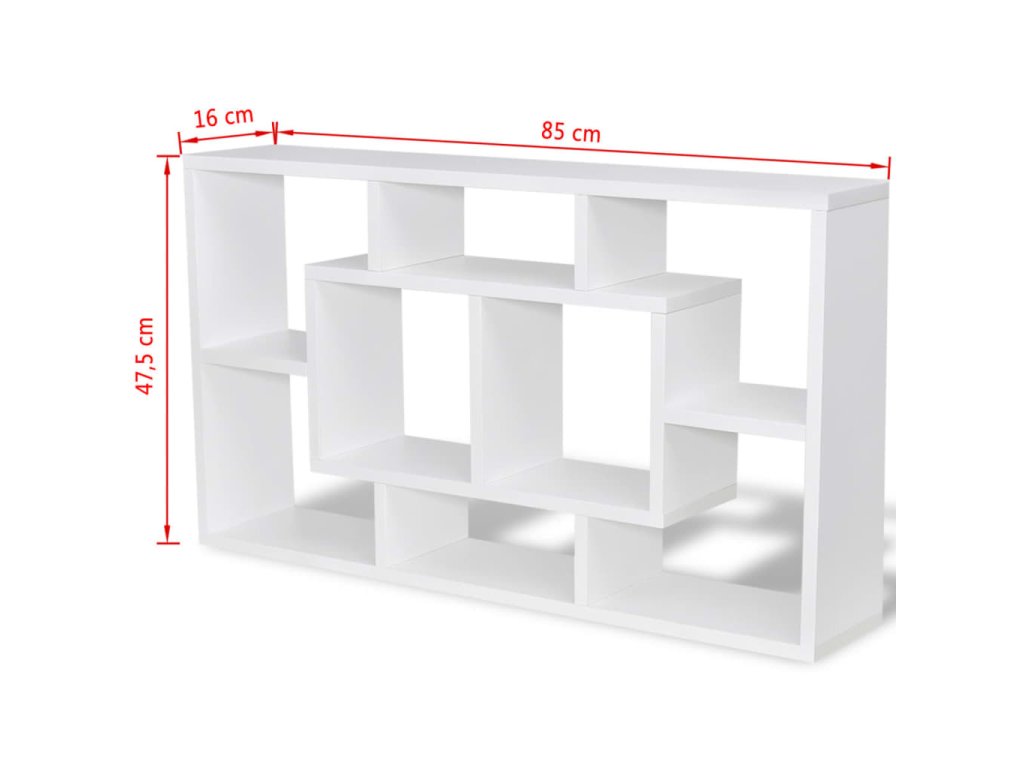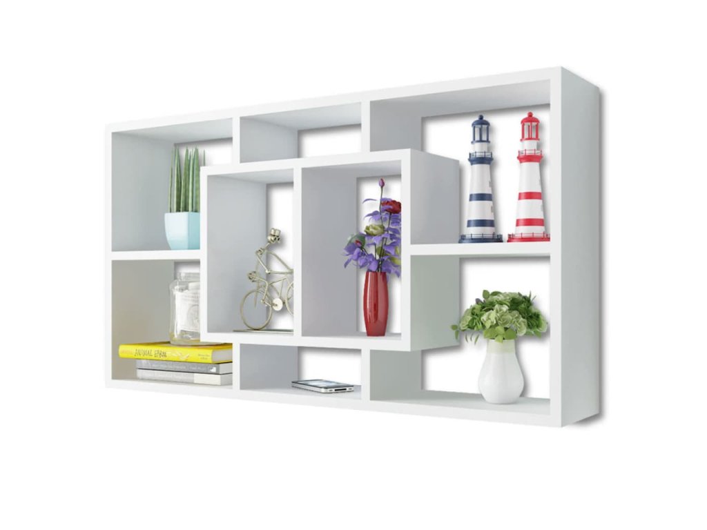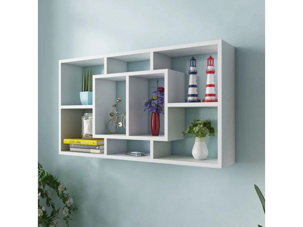 Plovoucí nástěnná police otevřená 8 přihrádek bílá 242548
