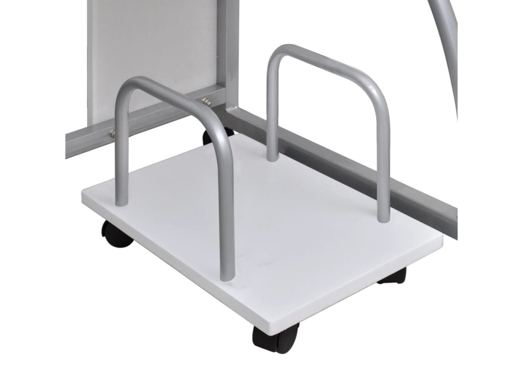 - Volný pohyb: Tento pracovní stůl můžete přemístit kamkoli ve svém pokoji pomocí koleček, která jsou součástí. 2 kolečka mají brzdy, které lze bezpečně zablokovat ve správné poloze.