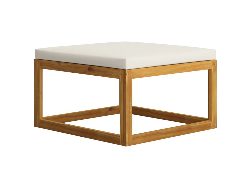 Podnožka s krémově bílou poduškou masivní akáciové dřevo 318558