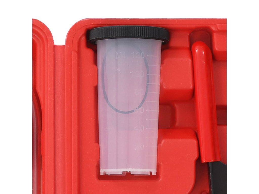 Podtlaková pumpa na odvzdušnění brzd s příslušenstvím je sada nástrojů, která kombinuje dvě funkce v jednom praktickém nástroji. Je ideální pro kontrolu těsnění potrubí, ventilů, sání a pro odvzdušňování brzdových systémů nebo hydraulických spojů.