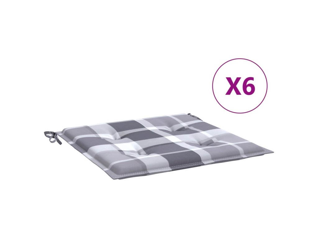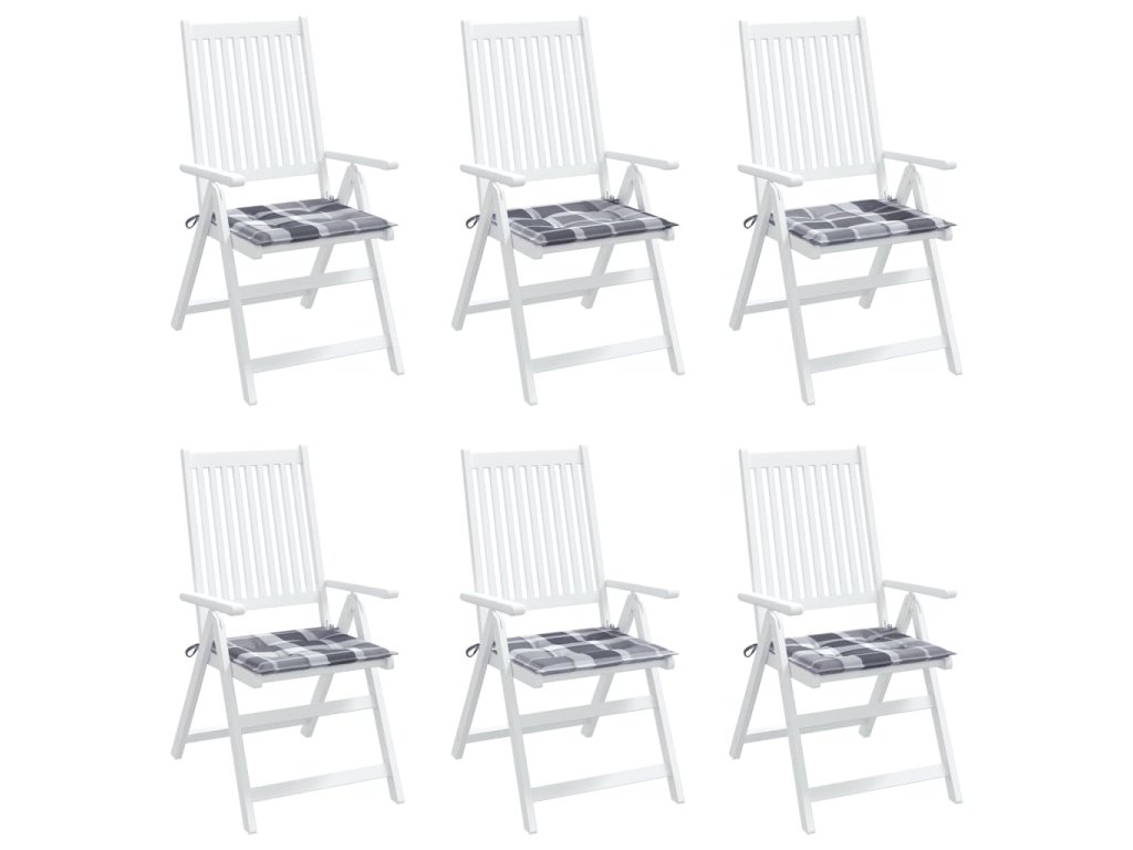 Podušky na zahradní židli 6 ks šedé kárované 50x50x3 cm oxford 314073