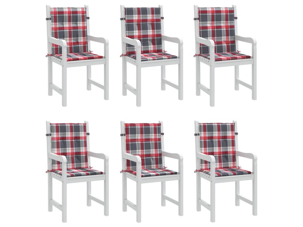 Podušky na židli nízké opěradlo 6ks červené kárované 100x50x3cm 314154