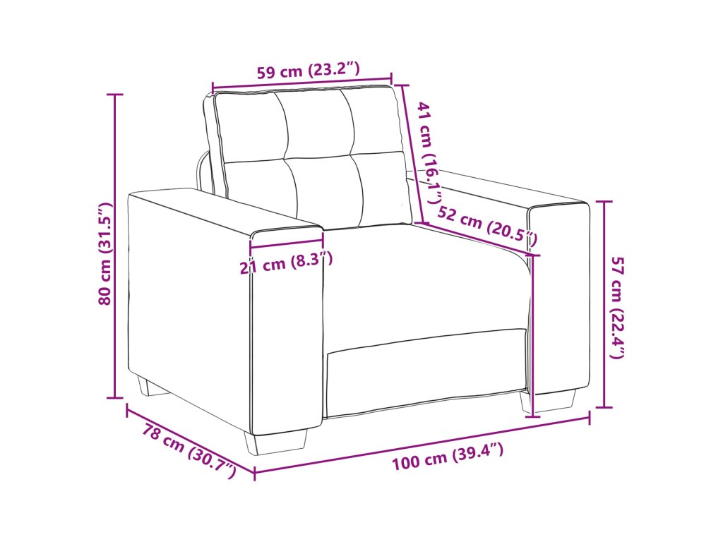 - 1 x křeslo: 100 x 78 x 80 cm (ŠxHxV)