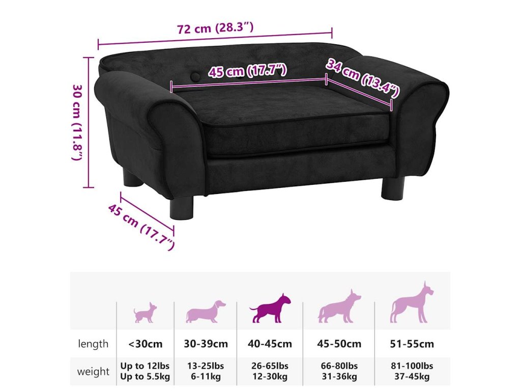 Pohovka pro psy černá 72 x 45 x 30 cm plyš 171038