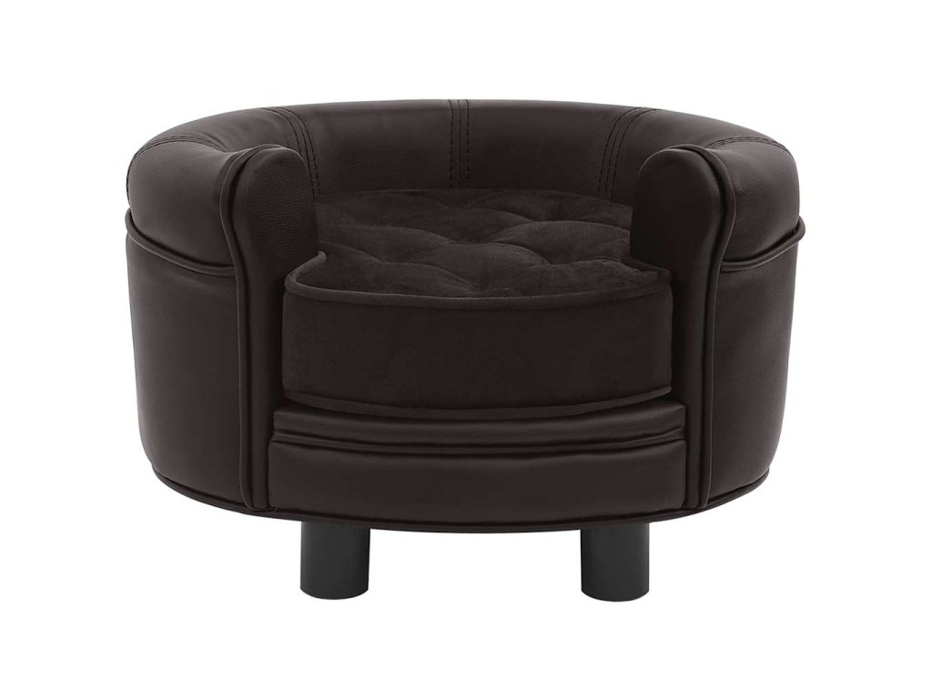 Hustě polstrovaná pohovka má dřevěný rám potažený umělou kůží, která se snadno čistí. Vašim čtyřnohým kamarádům se na ní proto bude moc pěkně odpočívat. Pratelný potah matrace je ušitý z na dotek měkkého plyše pro větší pohodlí. Dřevěné nohy s protiskluzovým designem zajišťují stabilitu a pevnost celé konstrukce. Vnější tělo je také mimořádně odolné, a tak může váš pejsek relaxovat v naprostém bezpečí.
