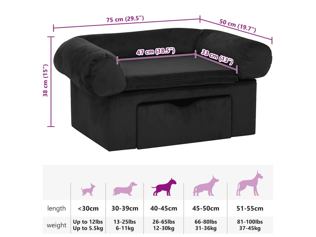 Pohovka pro psy se zásuvkou černá 75 x 50 x 38 cm plyš 171078