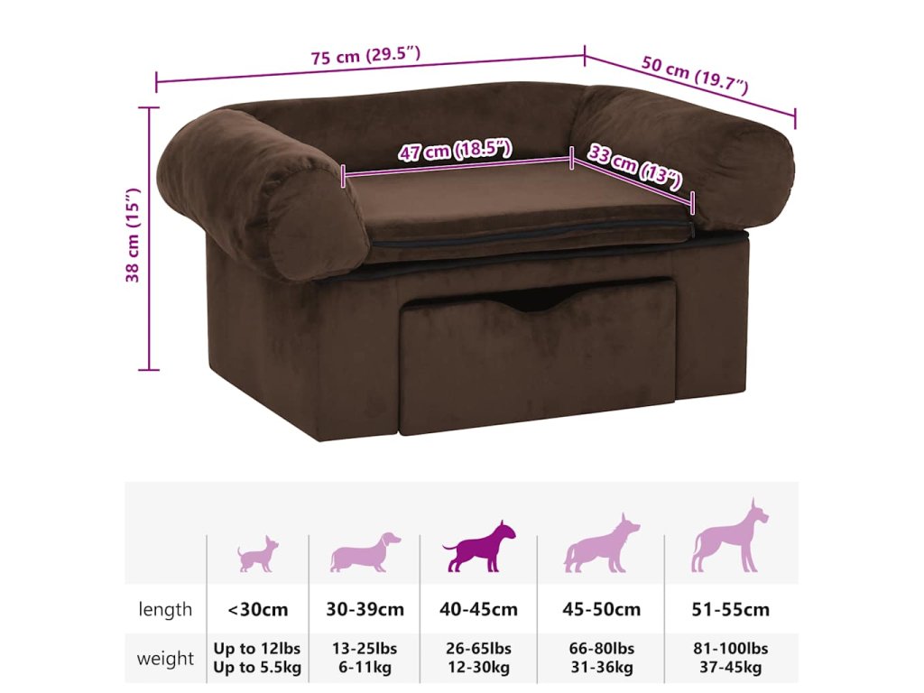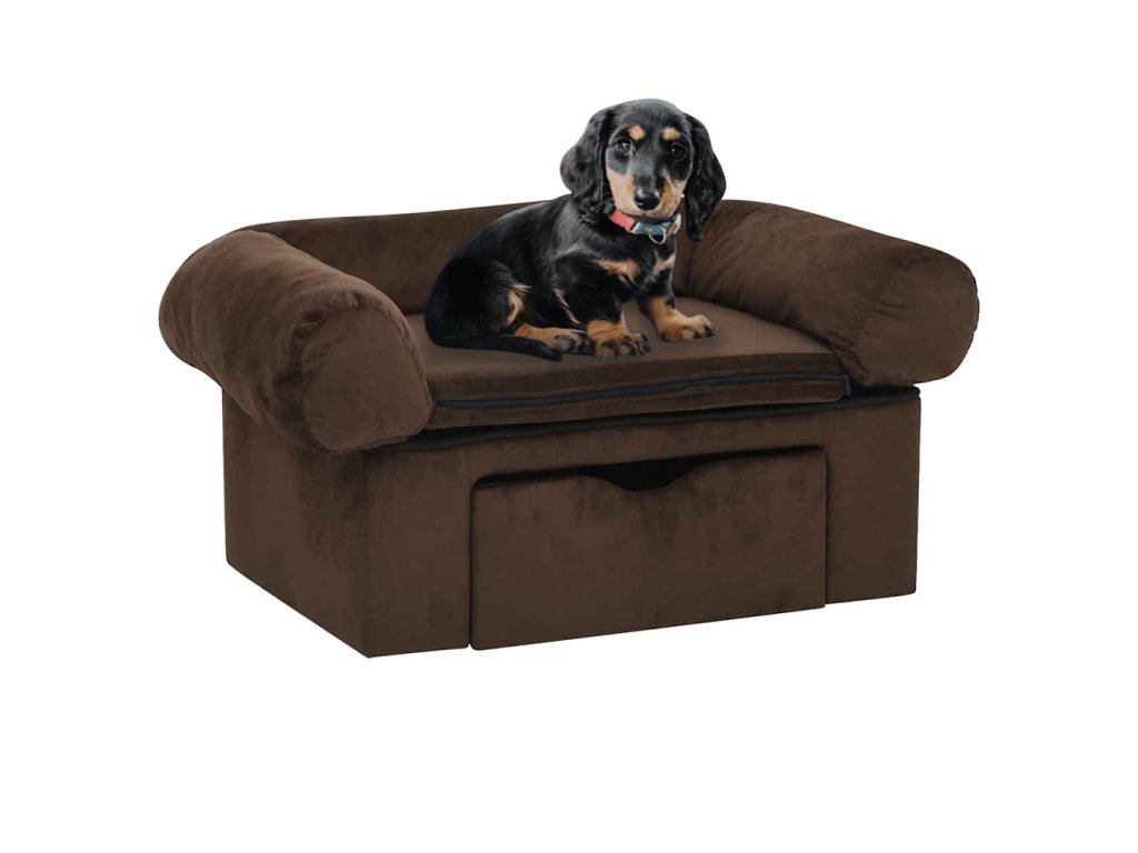 Pohovka pro psy se zásuvkou hnědá 75 x 50 x 38 cm plyš 171077