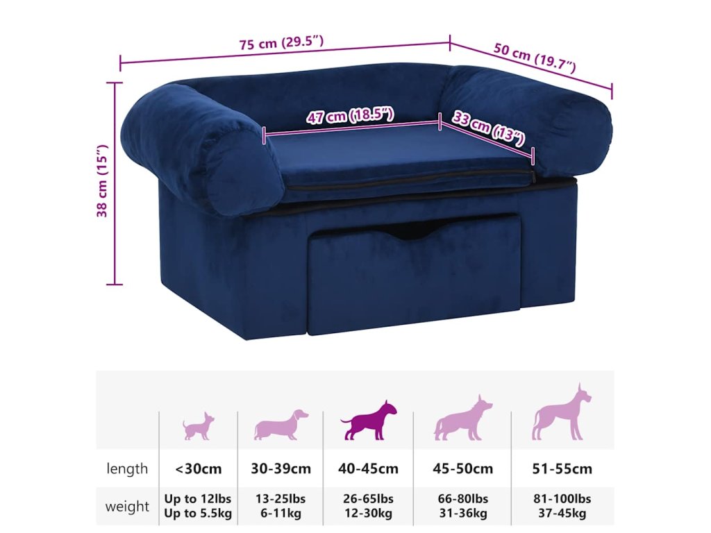 Pohovka pro psy se zásuvkou modrá 75 x 50 x 38 cm plyš 171080