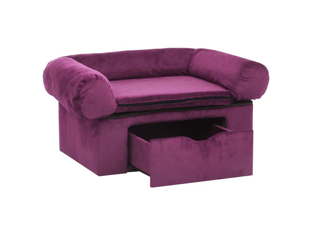 Pohovka pro psy se zásuvkou vínová 75 x 50 x 38 cm plyš 171081