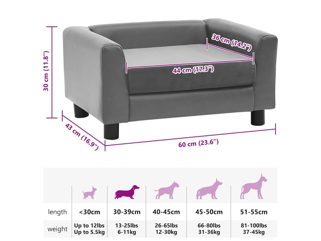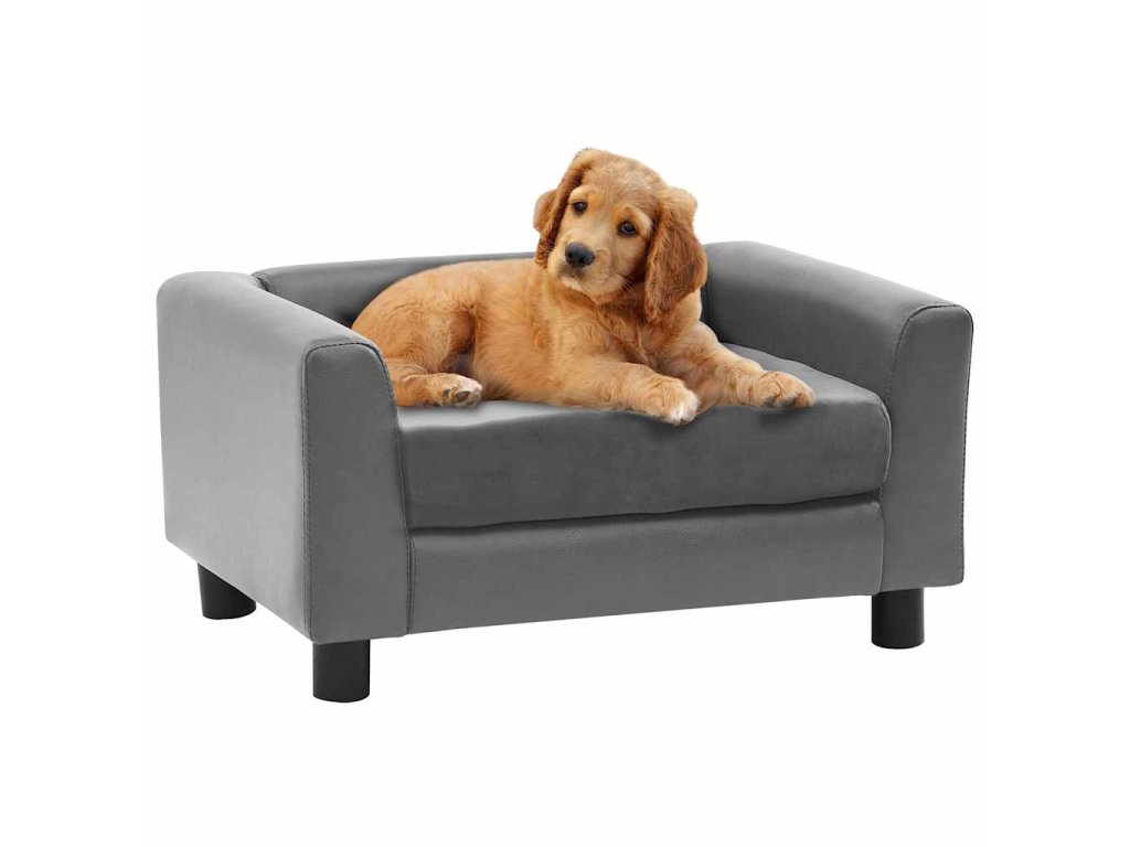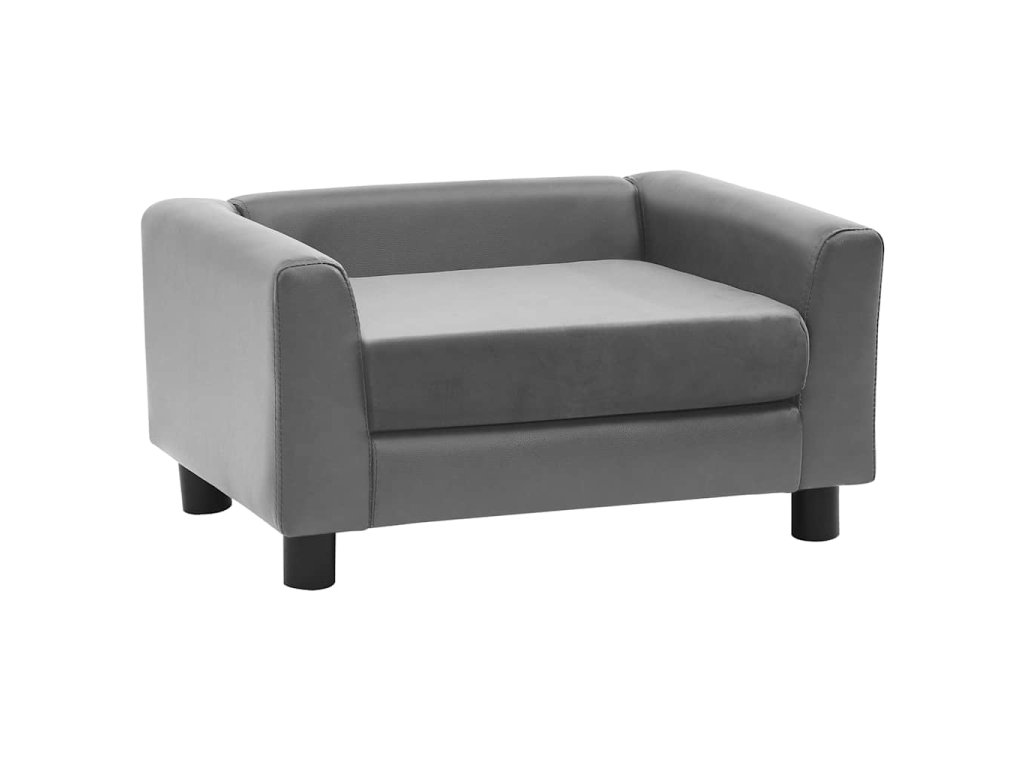 Pohovka pro psy šedá 60 x 43 x 30 cm plyš a umělá kůže 170959