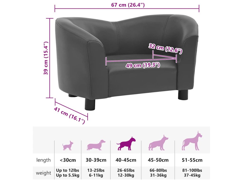 Pohovka pro psy šedá 67 x 41 x 39 cm umělá kůže 170948