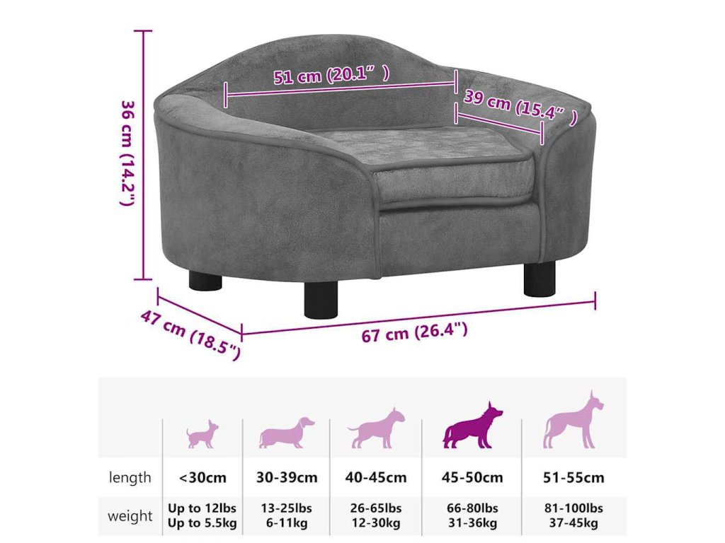 Pohovka pro psy šedá 67 x 47 x 36 cm plyš 171084