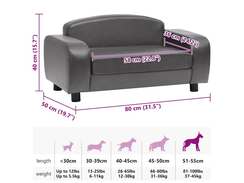 Pohovka pro psy šedá 80 x 50 x 40 cm umělá kůže 170964