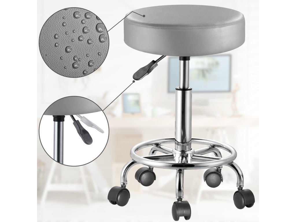 Otočná pojízdná stolička z koženky – šedá, 360°, výšková