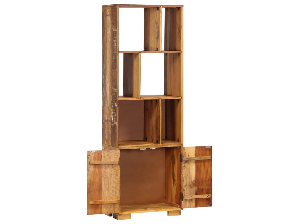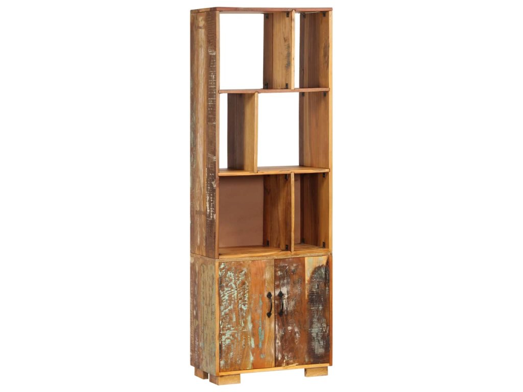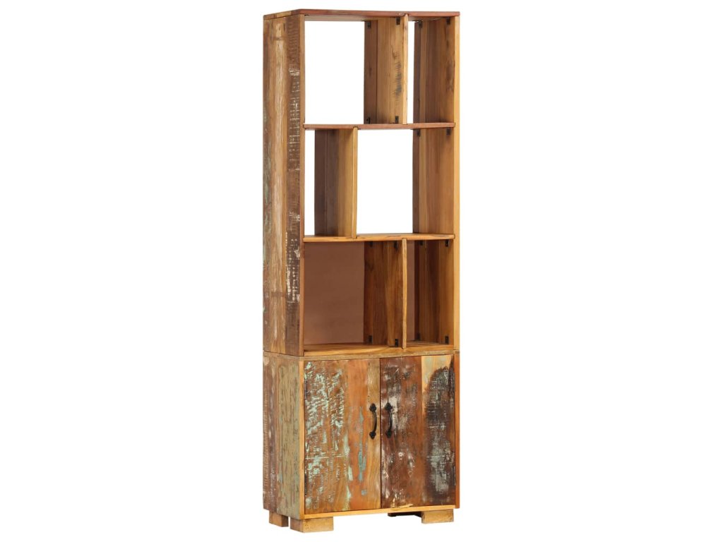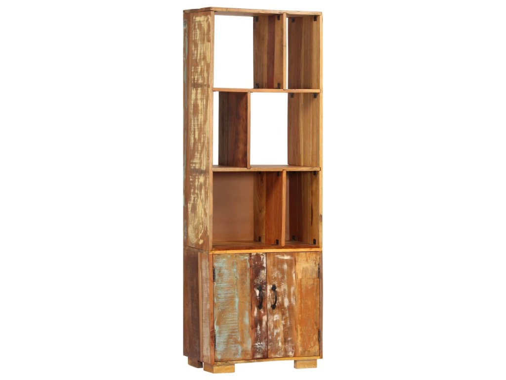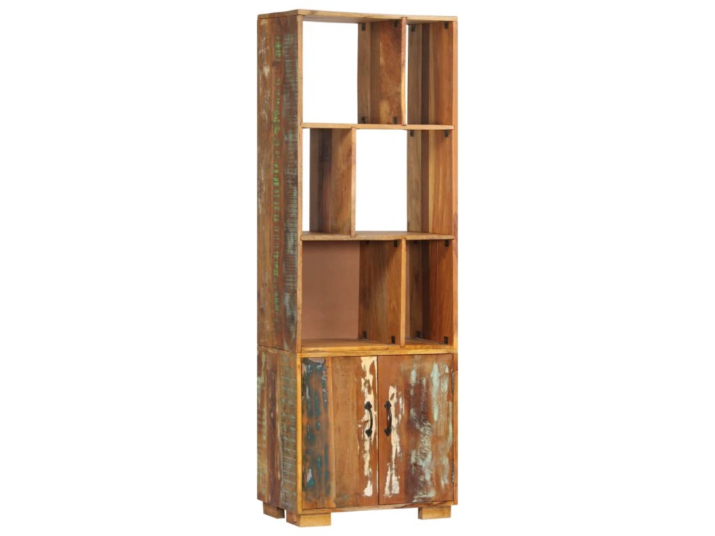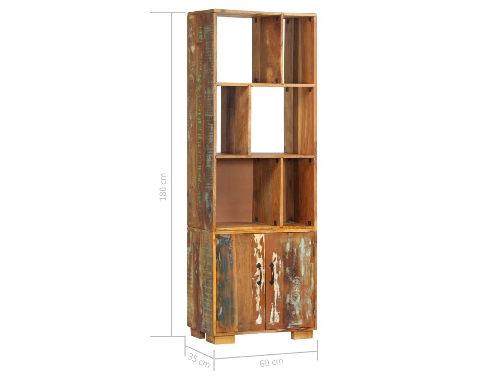 Vintage knihovna je zhotovená z masivního recyklovaného dřeva, které pochází z trámů, podlah a podpěrných nosníků ze starých budov určených k demolici. Sestává tedy z celé řady různých druhů dřeva, jako jsou borovice, teak, buk, dub, cedr, mangovník, akácie atd. Recyklované dřevo tak nabývá vlastnotí všech těchto rozličných typů dřevin. Navíc je již zestárlé, ošlehané a vyschlé, takže se nesmršťuje ani neohýbá. Každá fáze výrobního procesu je prováděna s mimořádnou péčí, ať už se jedná o leštění, natírání anebo lakování. Řemeslné zpracování a poutavá kresba dřeva činí každý kus nábytku zcela jedinečným a lehce odlišným od všech ostatních. Skříň navíc disponuje 1 skříňkou s 2 dvířky a 6 policemi, představuje tedy ideální řešení pro uložení a vystavení vaší sbírky knih, časopisů, dokumentů, ale i dekorativních ozdob, jako jsou zarámované fotografie či sběratelské předměty. Montáž je snadná.
