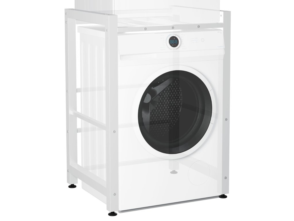 Tento robustní stojan nabízí maximální nosnost úctyhodných 300 kilogramů, takže je vhodný nejen pro pračky, ale i pro další domácí spotřebiče, jako jsou sušičky nebo mrazničky. V souladu s tím lze regál použít jako nástavbu pro domácí spotřebič, zatímco na regál lze umístit další pračku.