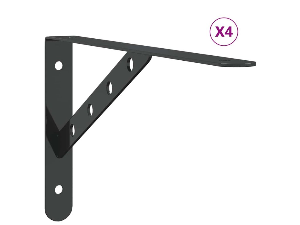 Policové držáky 4 ks 30 x 2,5 x 15,5 cm černé nerezová ocel 30304