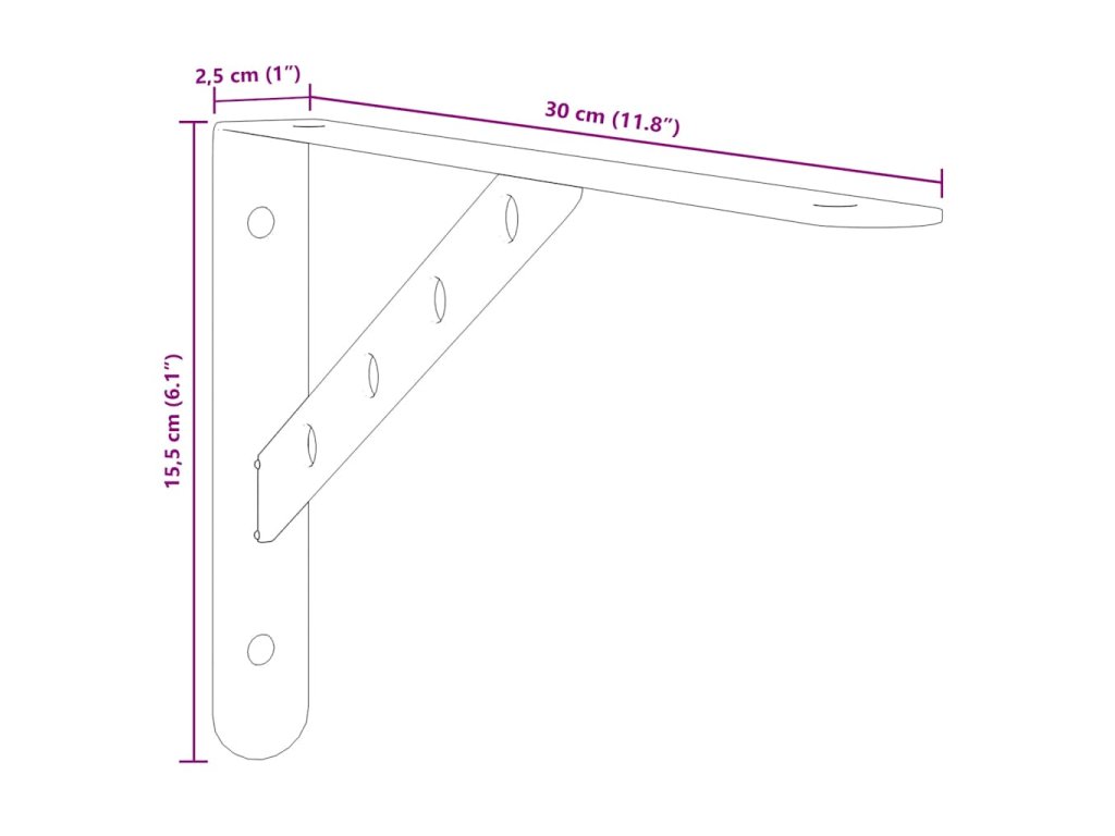 Policové držáky 4 ks 30 x 2,5 x 15,5 cm stříbrné nerezová ocel 30299