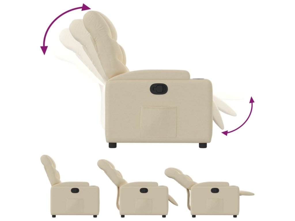- Manuální funkce polohování: Toto polohovací křeslo má madlo na pravé straně. Opěrku nohou a opěradlo můžete ručně nastavit do libovolné polohy podle vašich potřeb jednoduchým zatažením za madlo. Tato funkce umožňuje maximální sklon 135 stupňů. Opěradlo se navíc snadno vrátí do původní polohy zatažením za madlo.