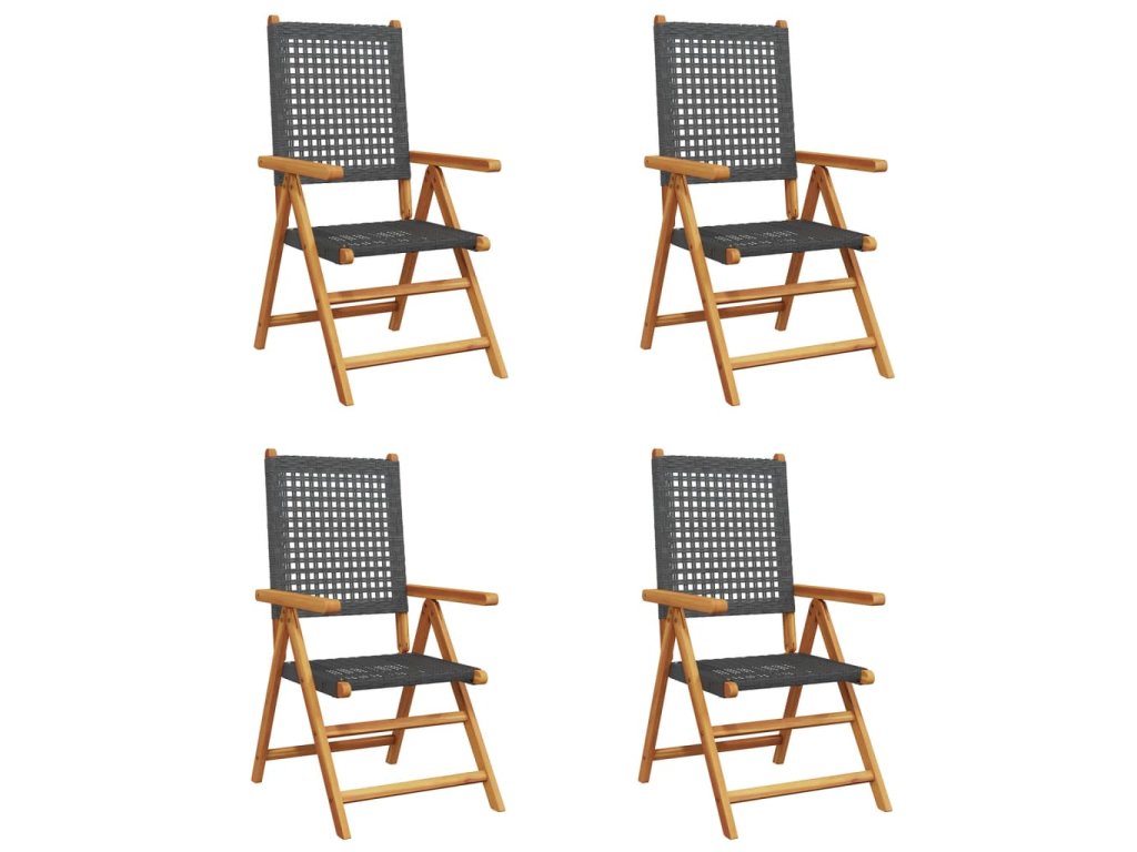Polohovací zahradní židle 4 ks černé polyratan a masivní dřevo 3214520