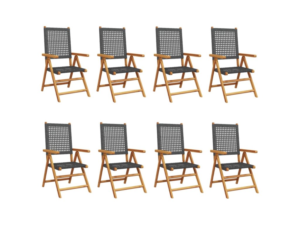 Polohovací zahradní židle 8 ks černé polyratan a masivní dřevo 3214522