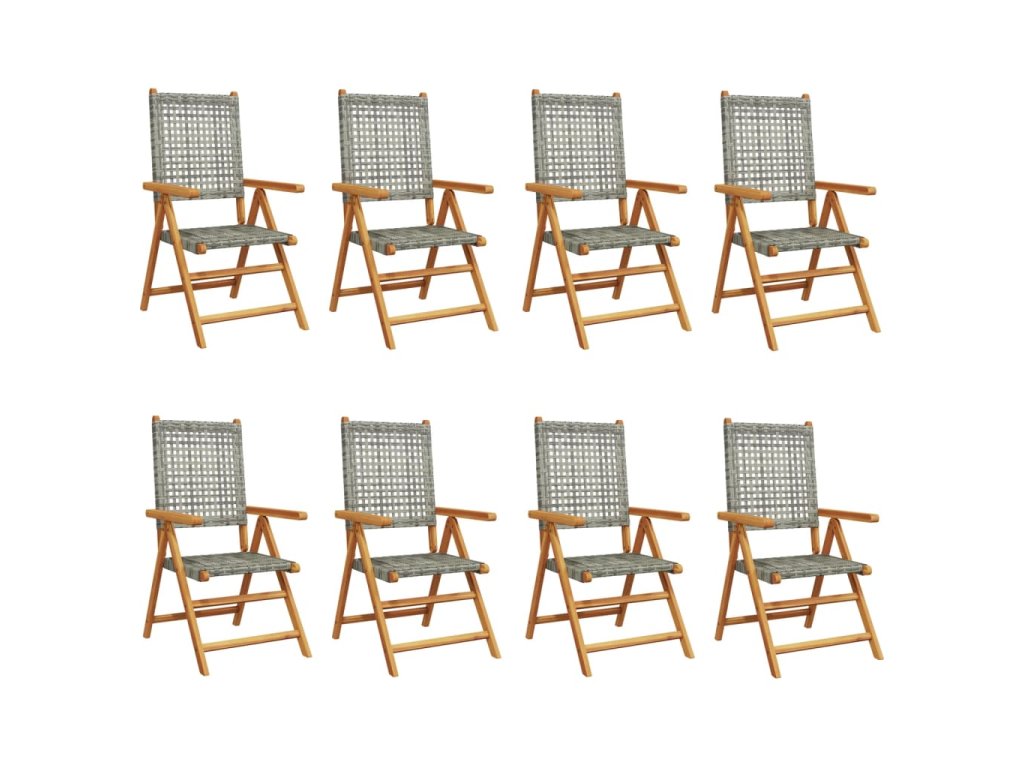 Polohovací zahradní židle 8 ks šedé polyratan a masivní dřevo 3214525