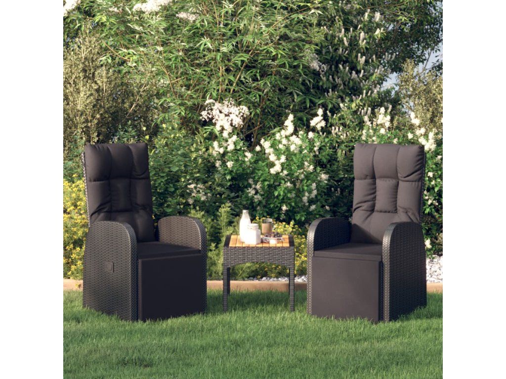 Polohovací zahradní židle s poduškami 2 ks černé polyratan 319544