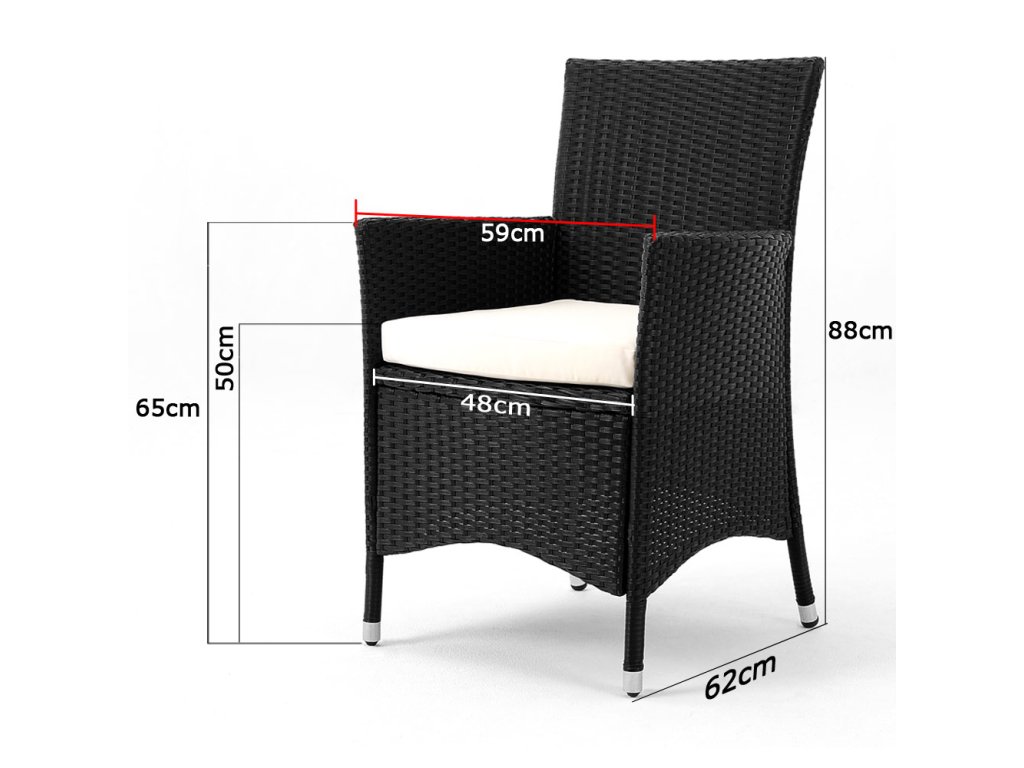 Dodejte své zahradě styl a pohodlí s touto elegantní 7dílnou sedací soupravou z polyratanu, která je ideální pro letní posezení s rodinou či přáteli. Set obsahuje velký jídelní stůl 190 × 90 cm s deskou z 5mm bezpečnostního mléčného skla a 6 stohovatelných křesel s 7 cm silnými, pohodlnými poduškami.