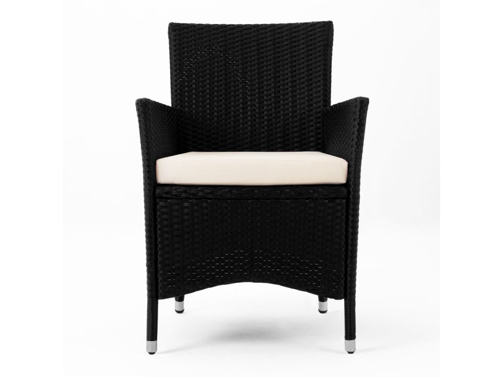Elegantní černý polyratan s kontrastními krémovými poduškami
