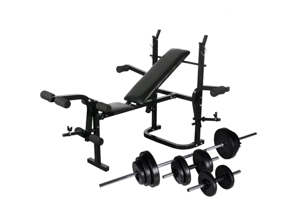 Posilovací lavice se stojanem na závaží a sadou činek 30,5 kg 275368