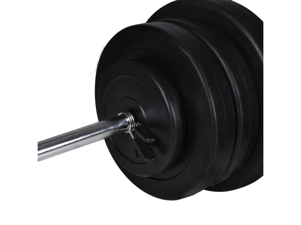 Sada činek barbell a dumbbell obsahuje silné pochromované činkové tyče s rychloupínací pružinovou objímkou (pro tyč barbell), neklouzavé rýhované rukojeti a vroubkované hvězdicové uzávěry (pro tyče dumbbell), které zajišťují bezpečné upevnění zátěžových kotoučů. Můžete tak cvičit bez obav o vaše bezpečí. Zátěžové kotouče jsou vyrobeny s robustním vrchním pláštěm z polyetylenu. Dají se kombinovat různými způsoby tak, aby vyhovovaly různým tréninkovým účelům.