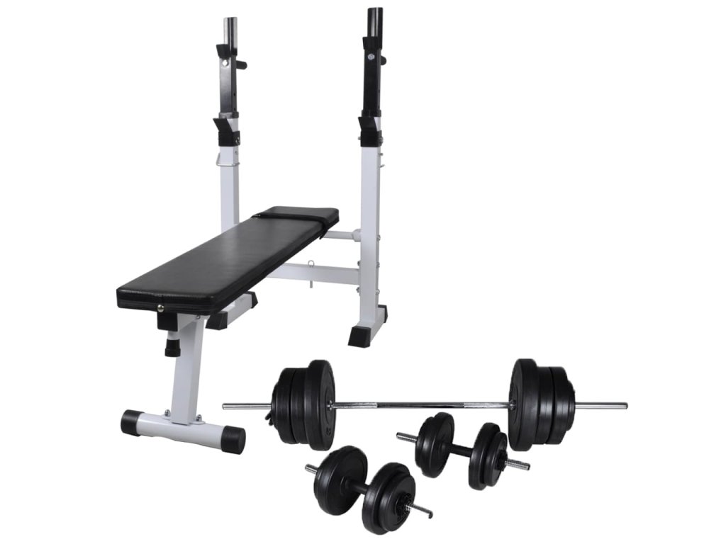 Posilovací lavice se stojanem na závaží a sadou činek 60,5 kg 275361