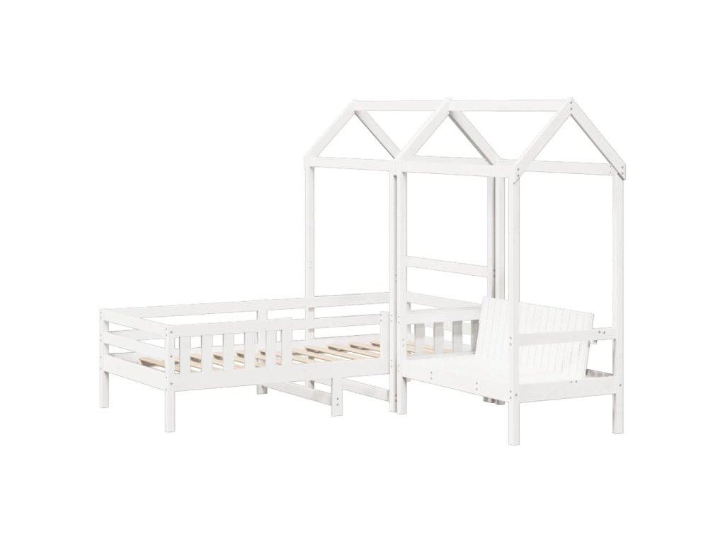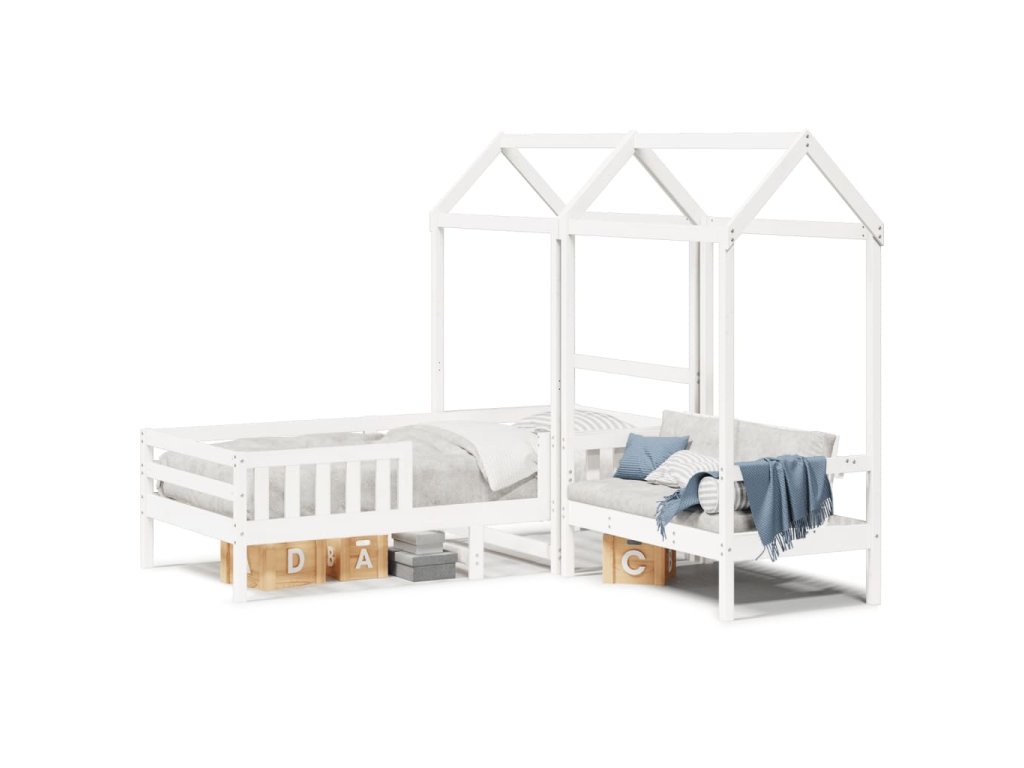 Postel a lavice se střechou bílá 80x200 cm masivní borové dřevo 3282178