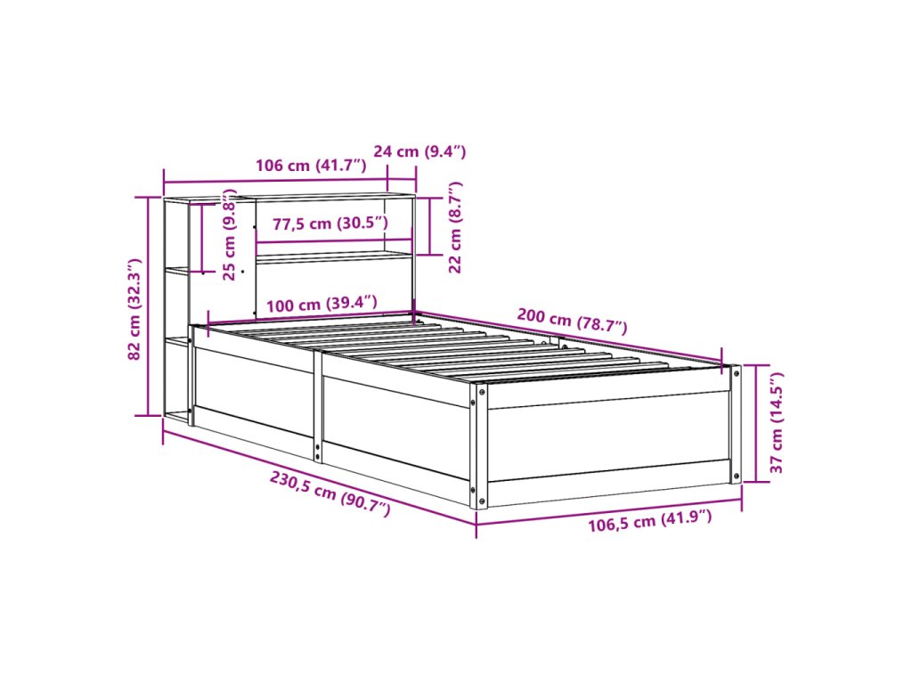 - Rozměry čela postele: 106 x 24 x 82 cm (D x Š x V)