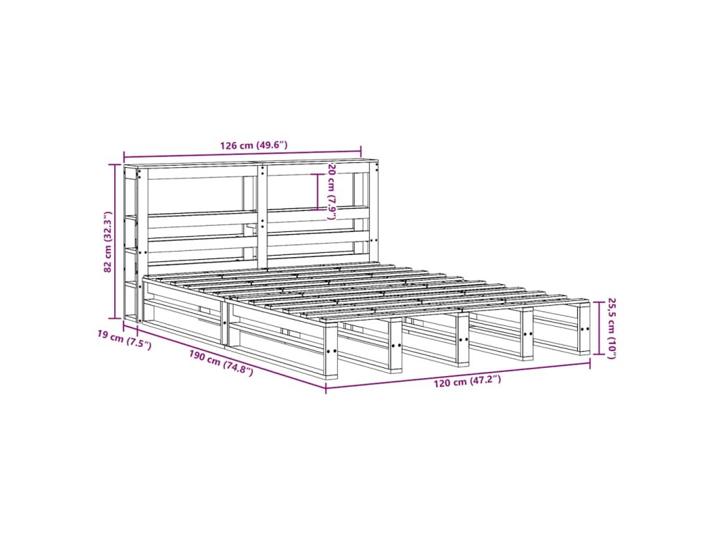 - Rozměry čela postele: 126 x 19 x 82 cm (D x Š x V)