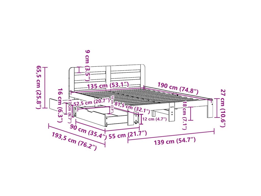 Postel bez matrace 135 x 190 cm masivní borovice 3309869